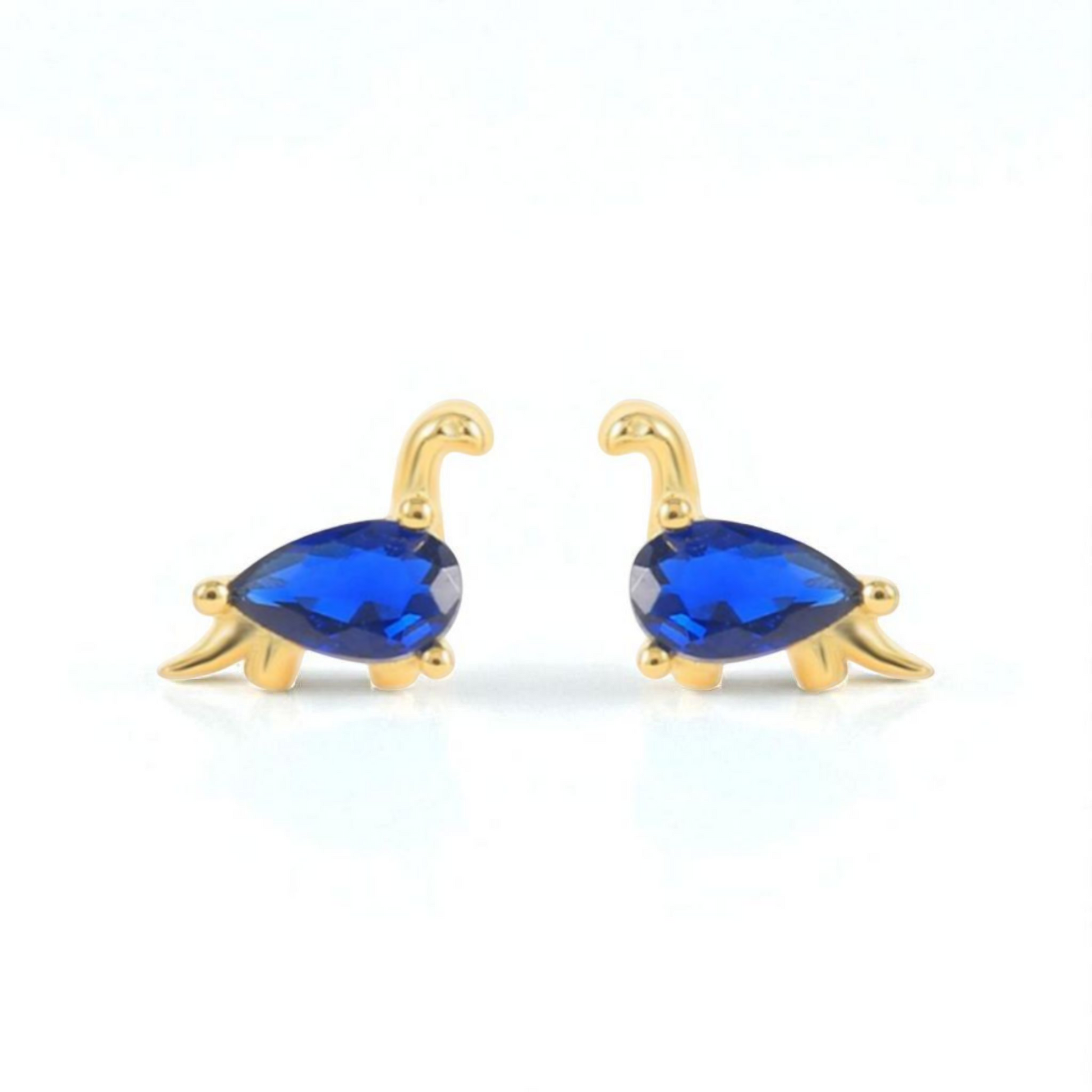 18k Gold Plated 925 Silver & Blue Cubic Zirconia Dinosaur Earrings